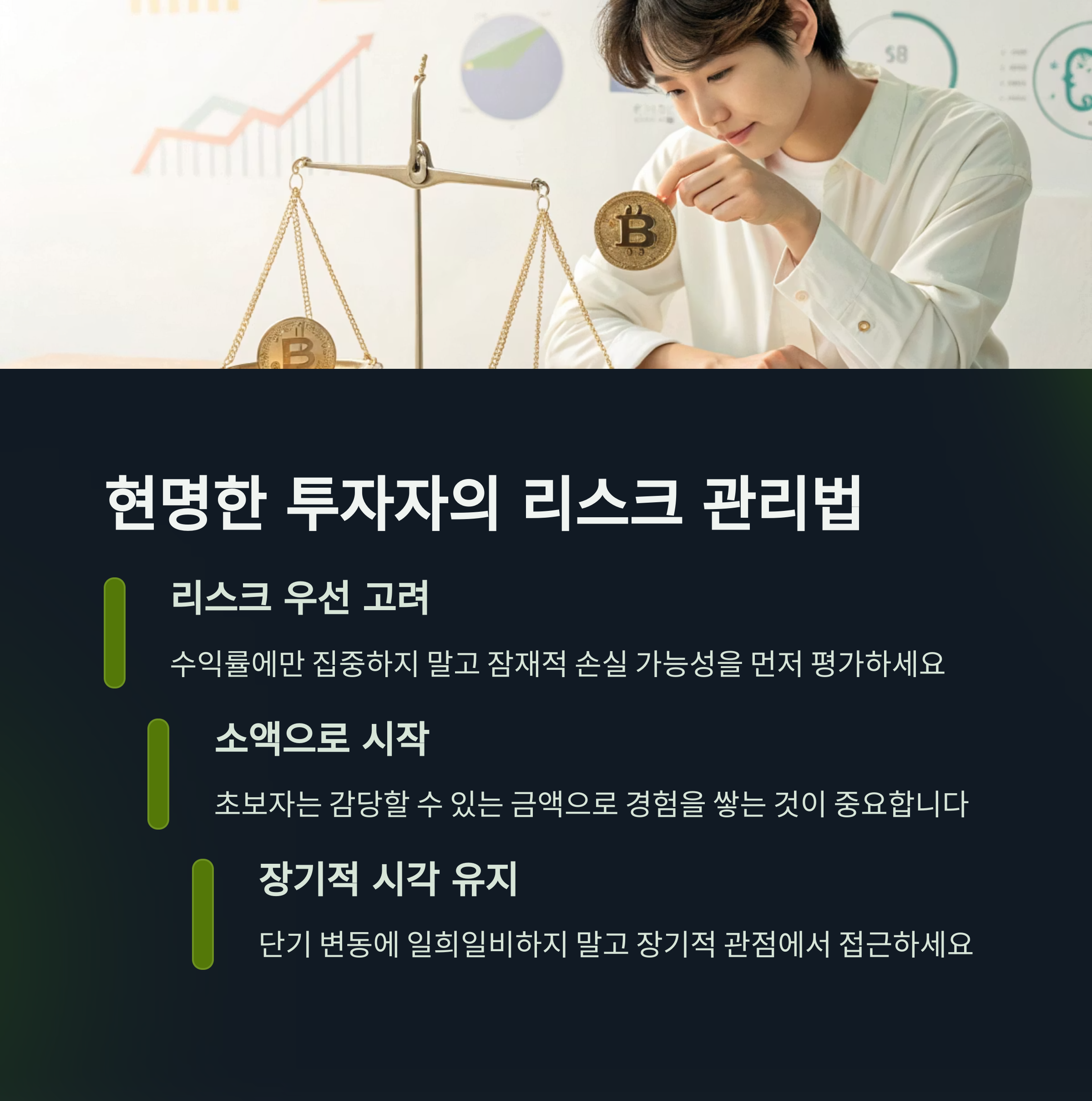 수익률만 보지 말고 리스크도 고려 장기적 계획 세우기 신뢰도 높은 채널 우선 활용