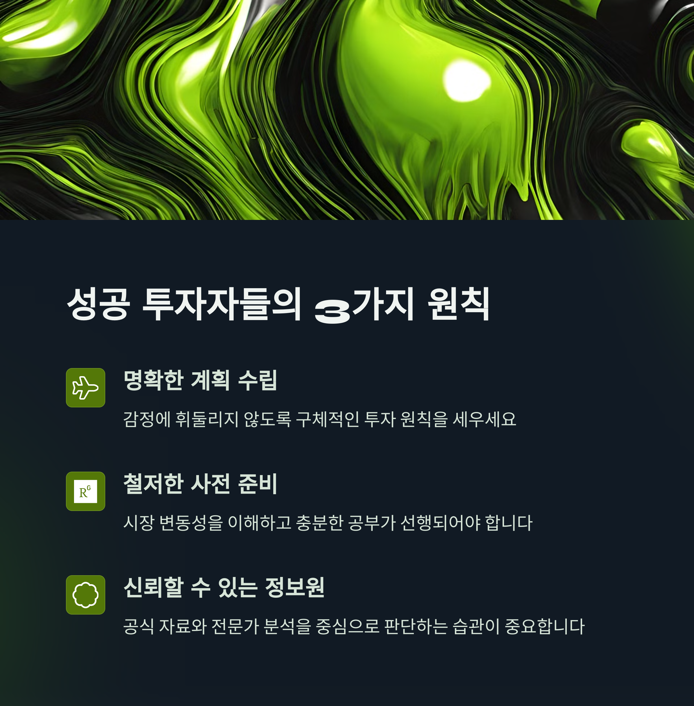 | 투자 원칙 설정 | 감정에 휘둘리지 않도록 투자 기준을 정하세요. |