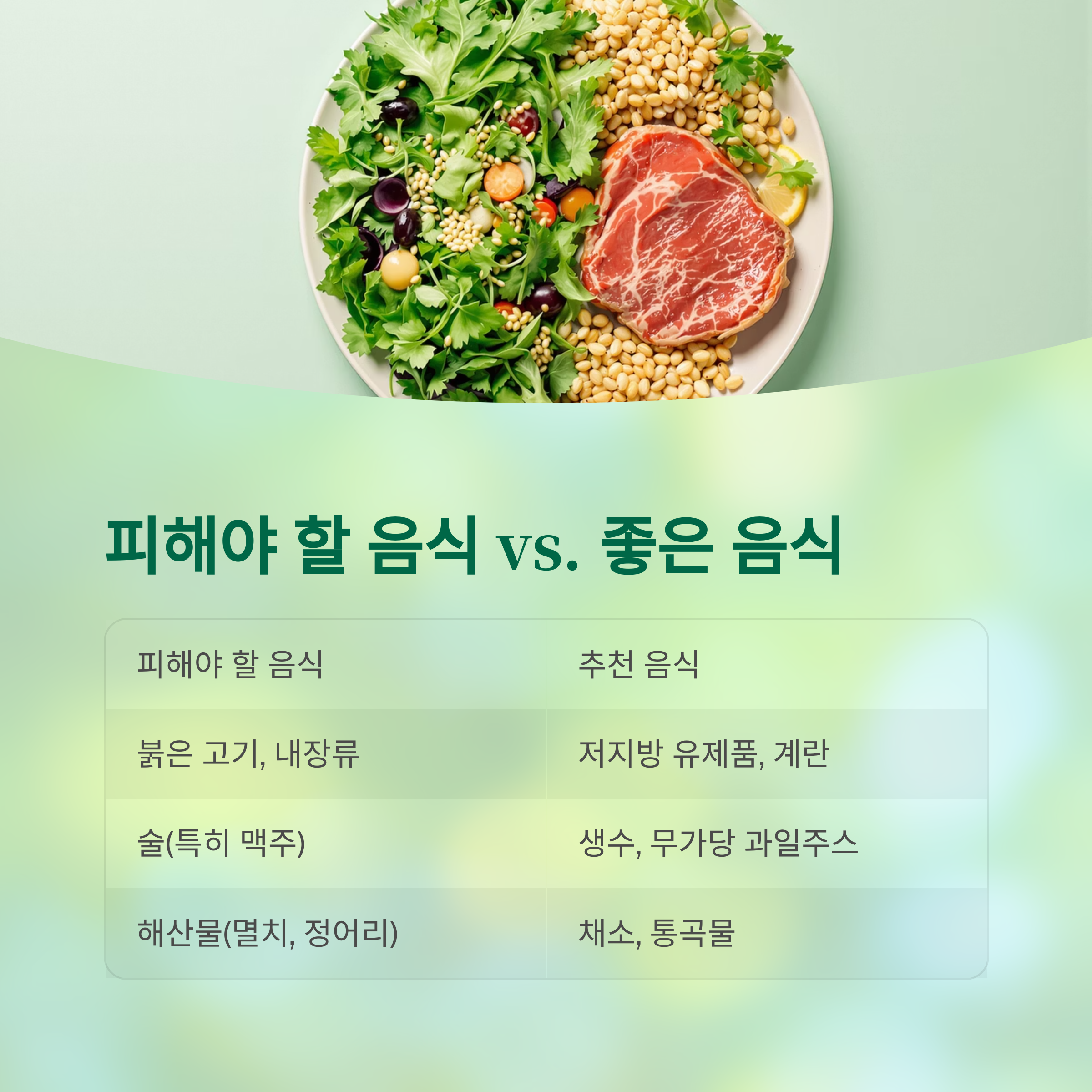 | 피해야 할 음식 | 추천 음식 |