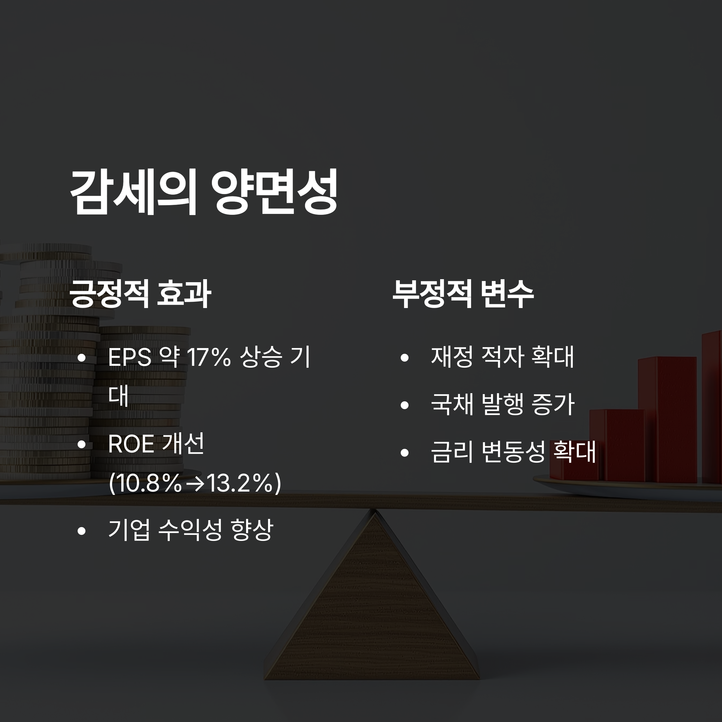 장기적으로 감세 정책은 기업 수익성에 긍정적인 영향을 줄 수 있습니다.