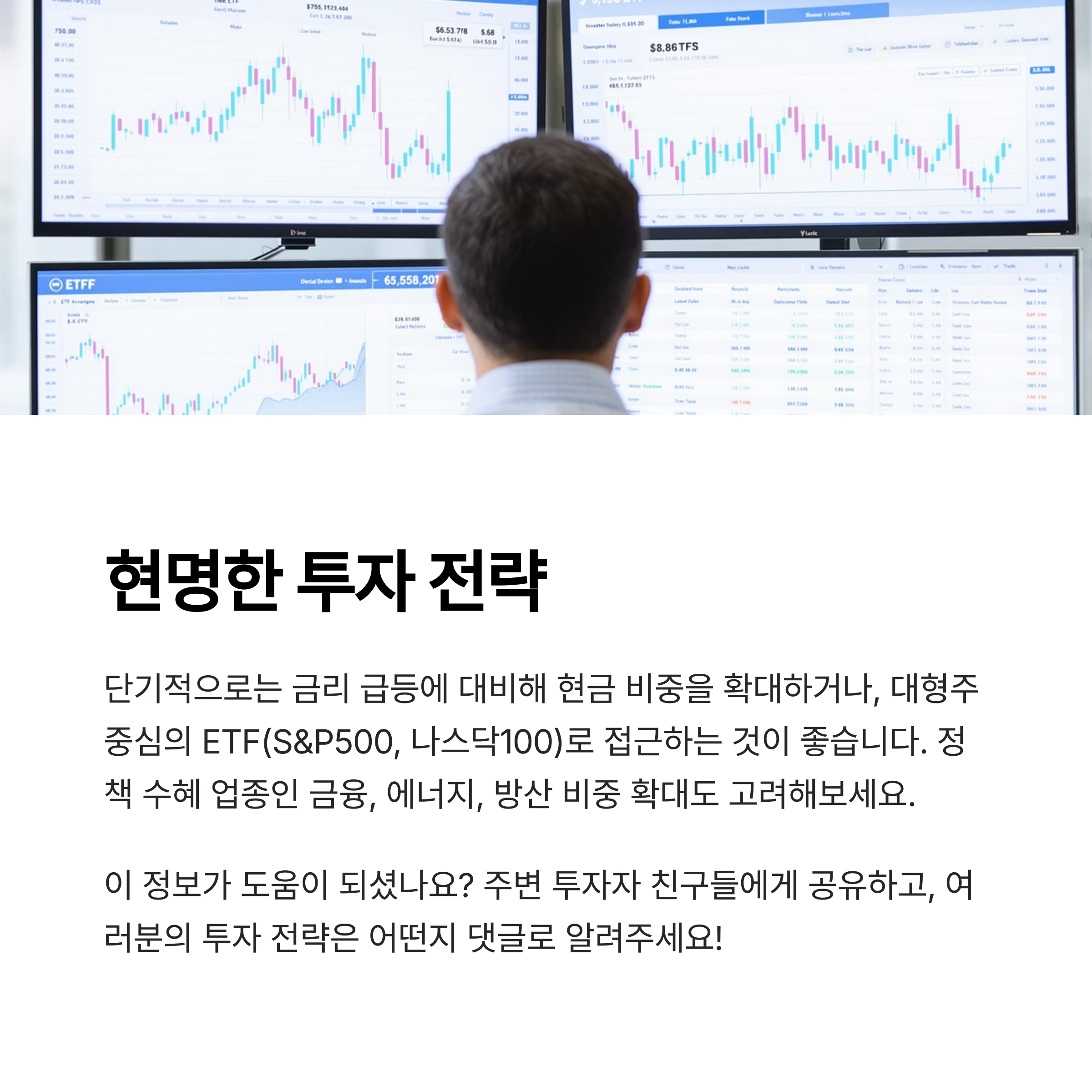 - 단기적으로는 금리 급등에 대비해 현금 비중 확대 또는 채권 ETF로 분산