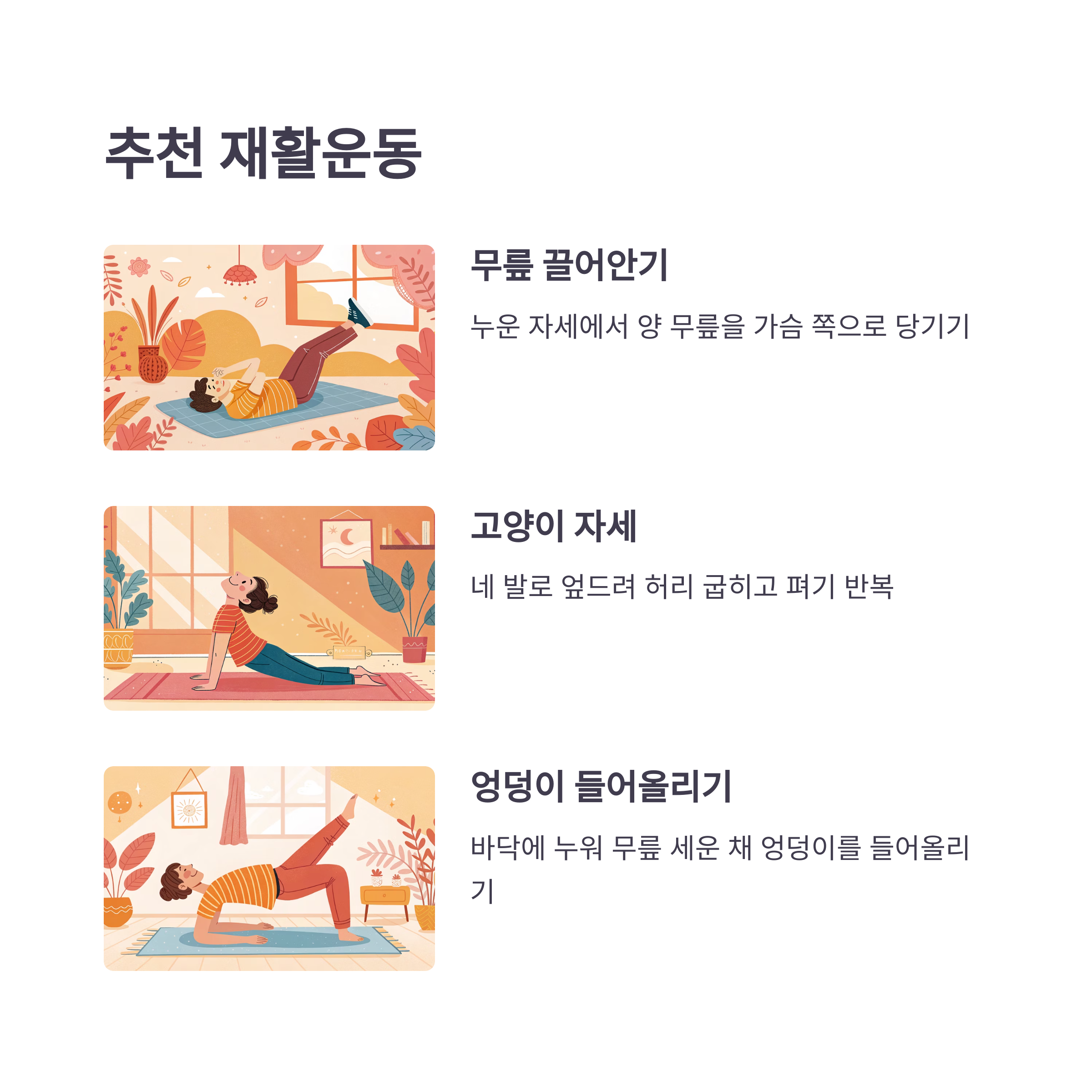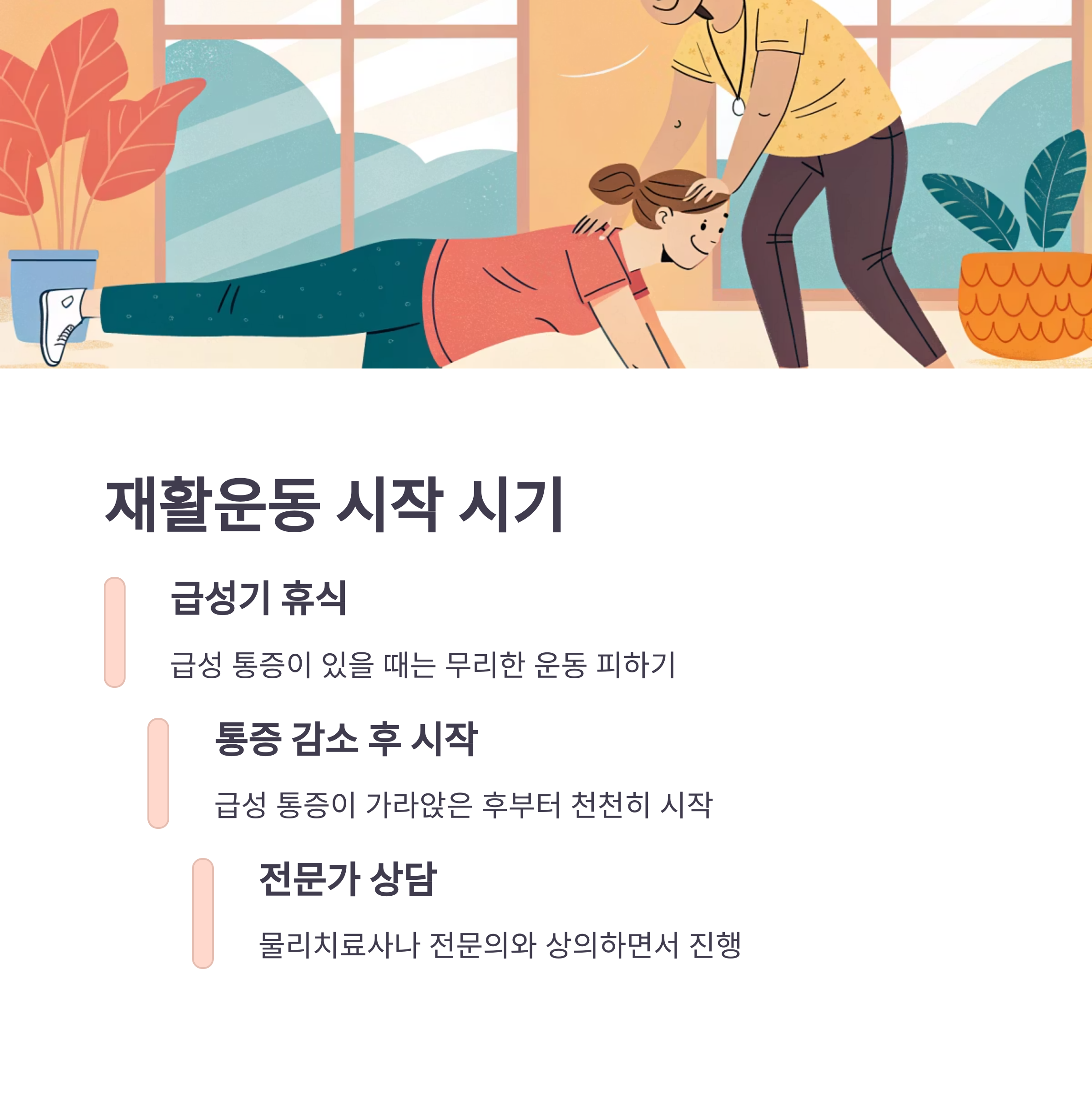 급성 통증이 가라앉은 후부터 천천히 시작하는 게 안전합니다.