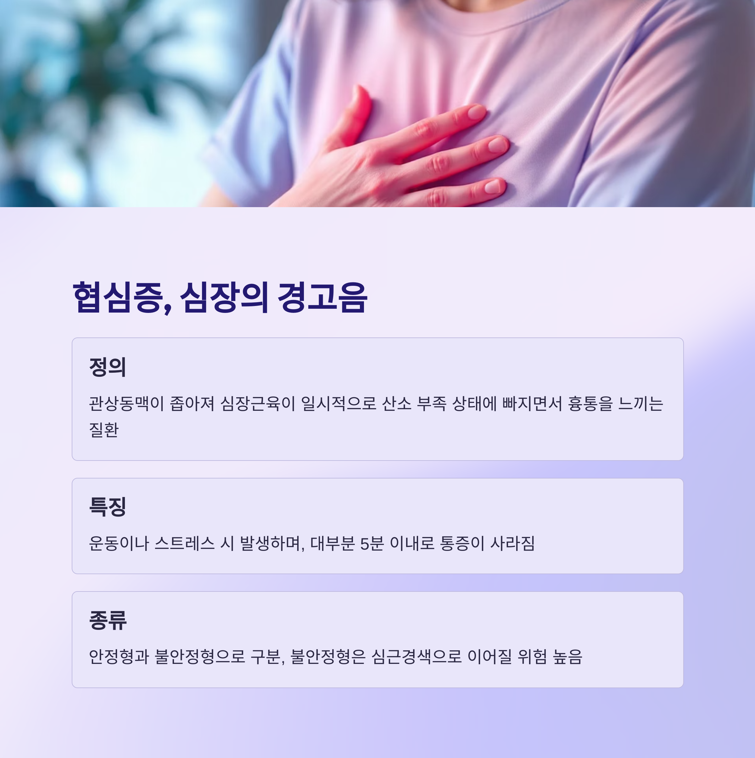 안정형과 불안정형 협심증으로 나뉘며, 특히 불안정형은 심근경색으로 이어질 위험이 높아 빠른 진단과 치료가 필요합니다.