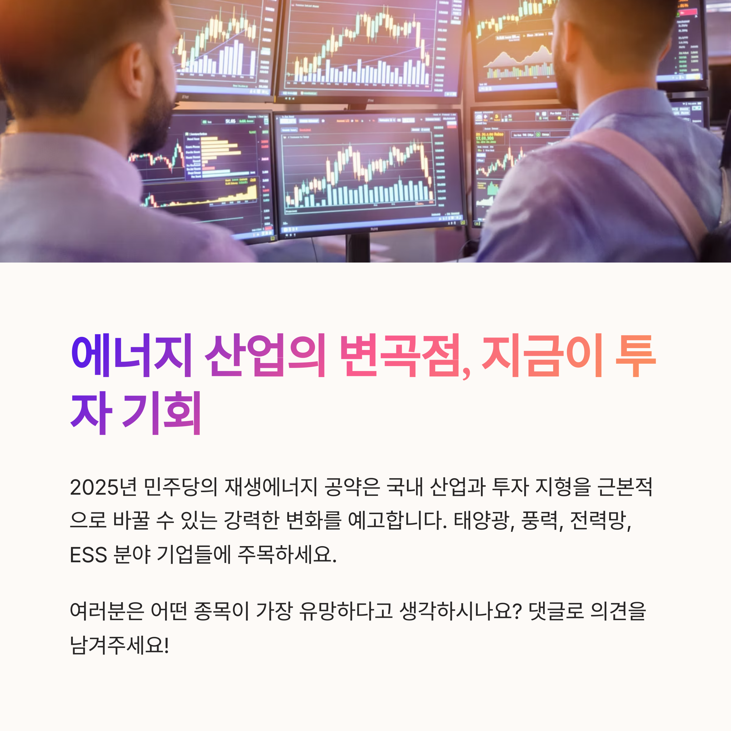 2025년 민주당의 재생에너지 중심 공약은 단순한 정치 선언을 넘어,