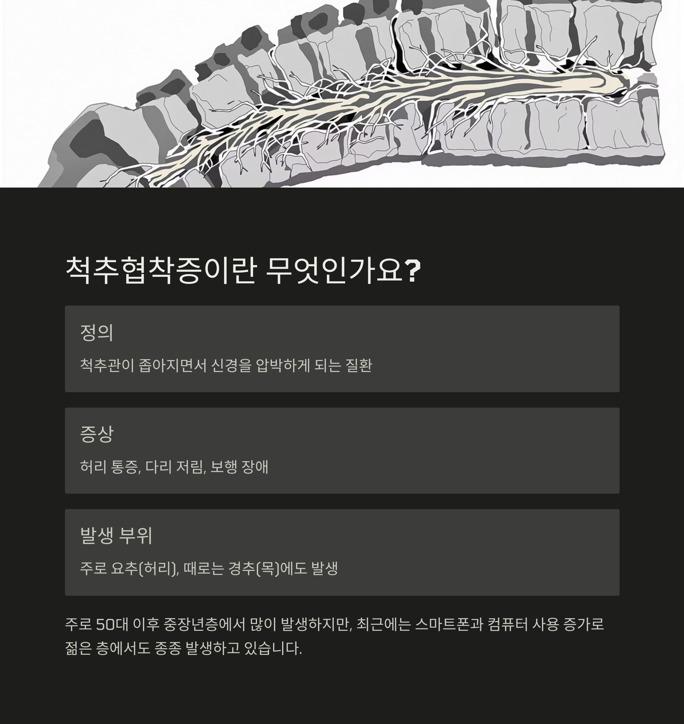척추협착증, 이제는 수술 없이도 회복할 수 있습니다. 2025년형 최신 치료 트렌드를 한눈에 확인하세요.