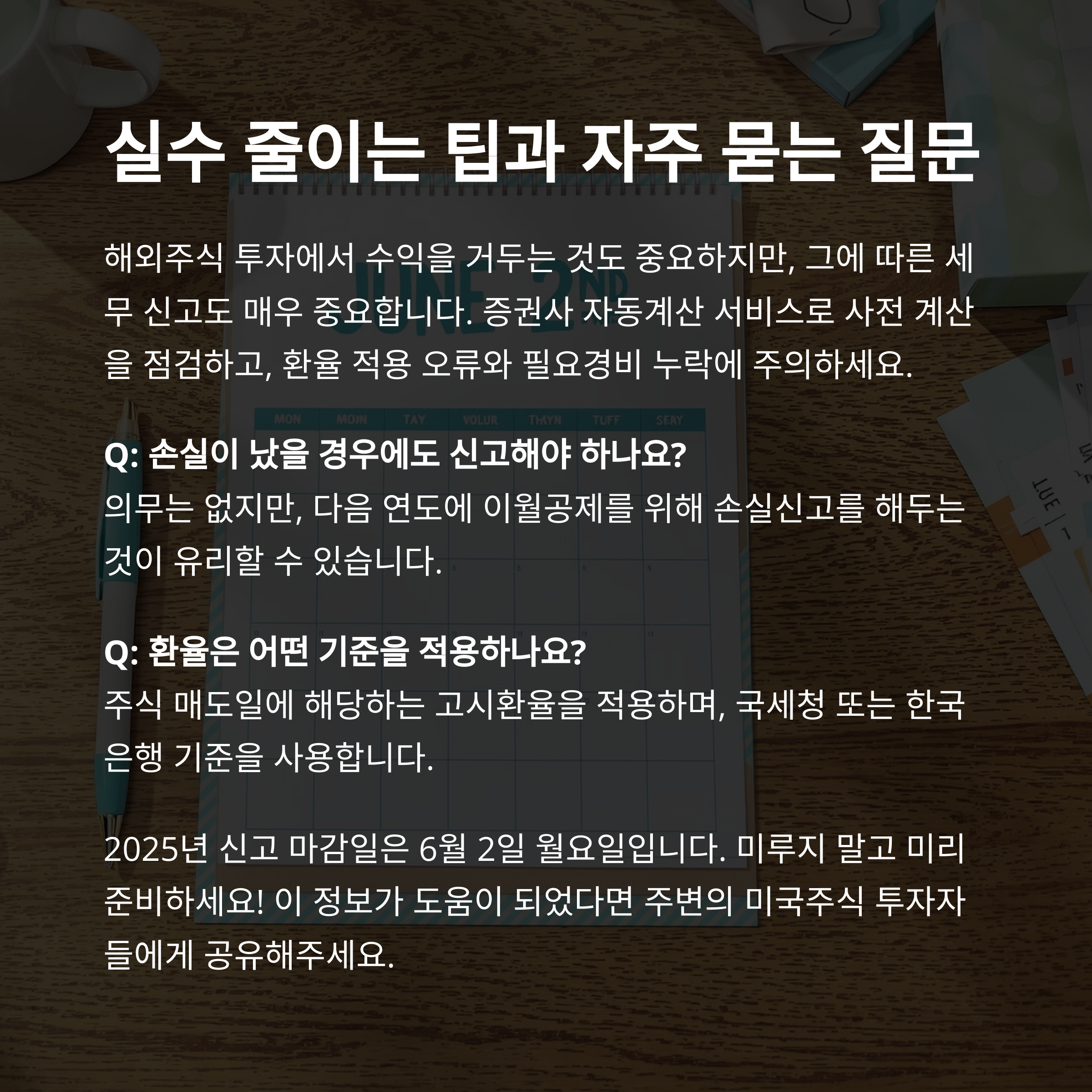 특히 2025년은 6월 2일이 신고 마감일이라는 점을 꼭 기억해 주세요. 잘못된 신고는 가산세로 이어질 수 있기 때문에, 사전에 준비하고 실수를 줄이는 것이 핵심입니다.