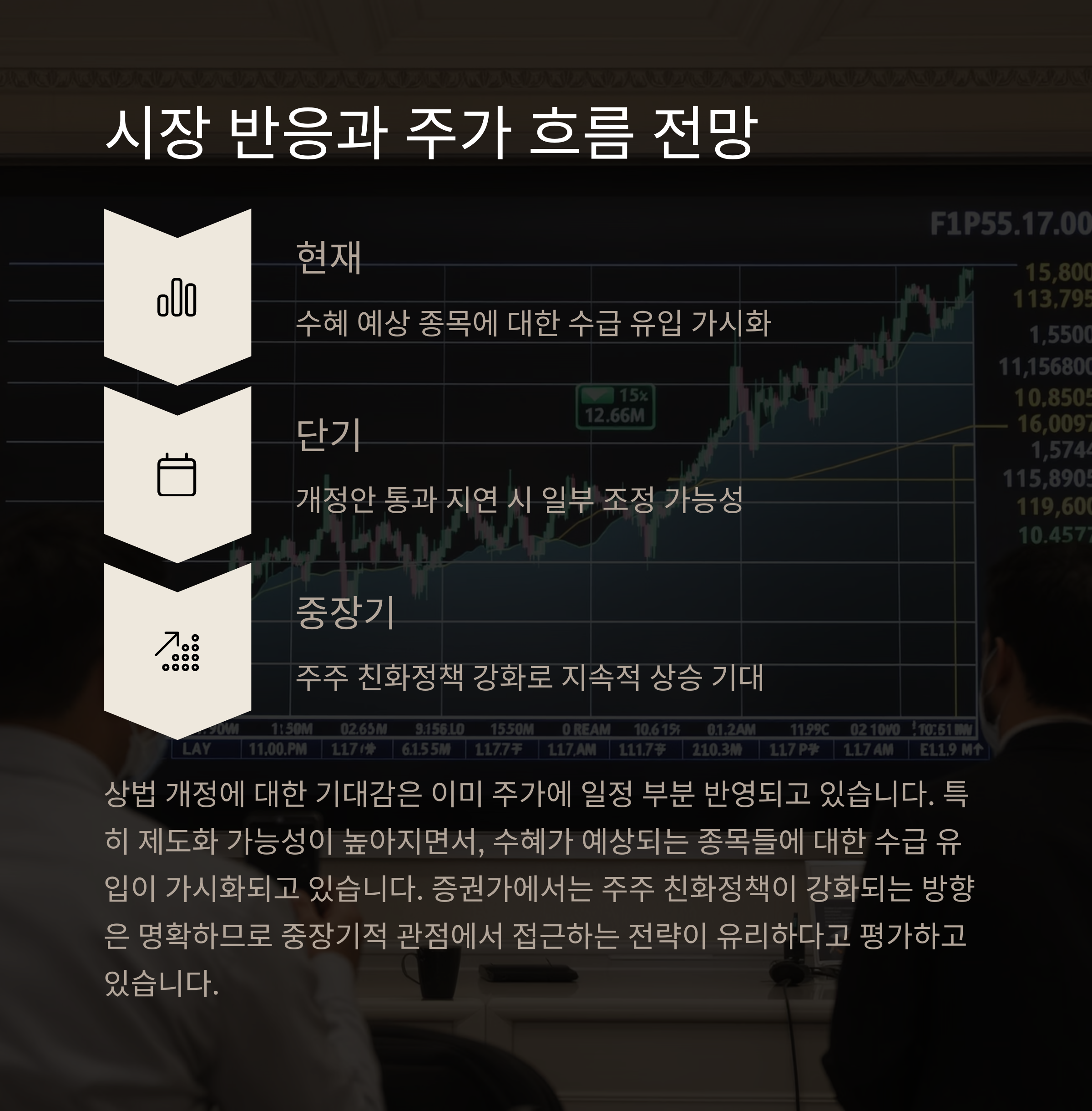특히 대선 이후 국회에서 적극적으로 추진 중인 상법 개정안은 주식 시장에 지대한 영향을 미칠 수 있는 변수로 주목받고 있습니다. 주주 친화적인 제도 변화는 투자 환경 자체를 바꾸는 핵심 키워드로 작용할 수 있는데요.