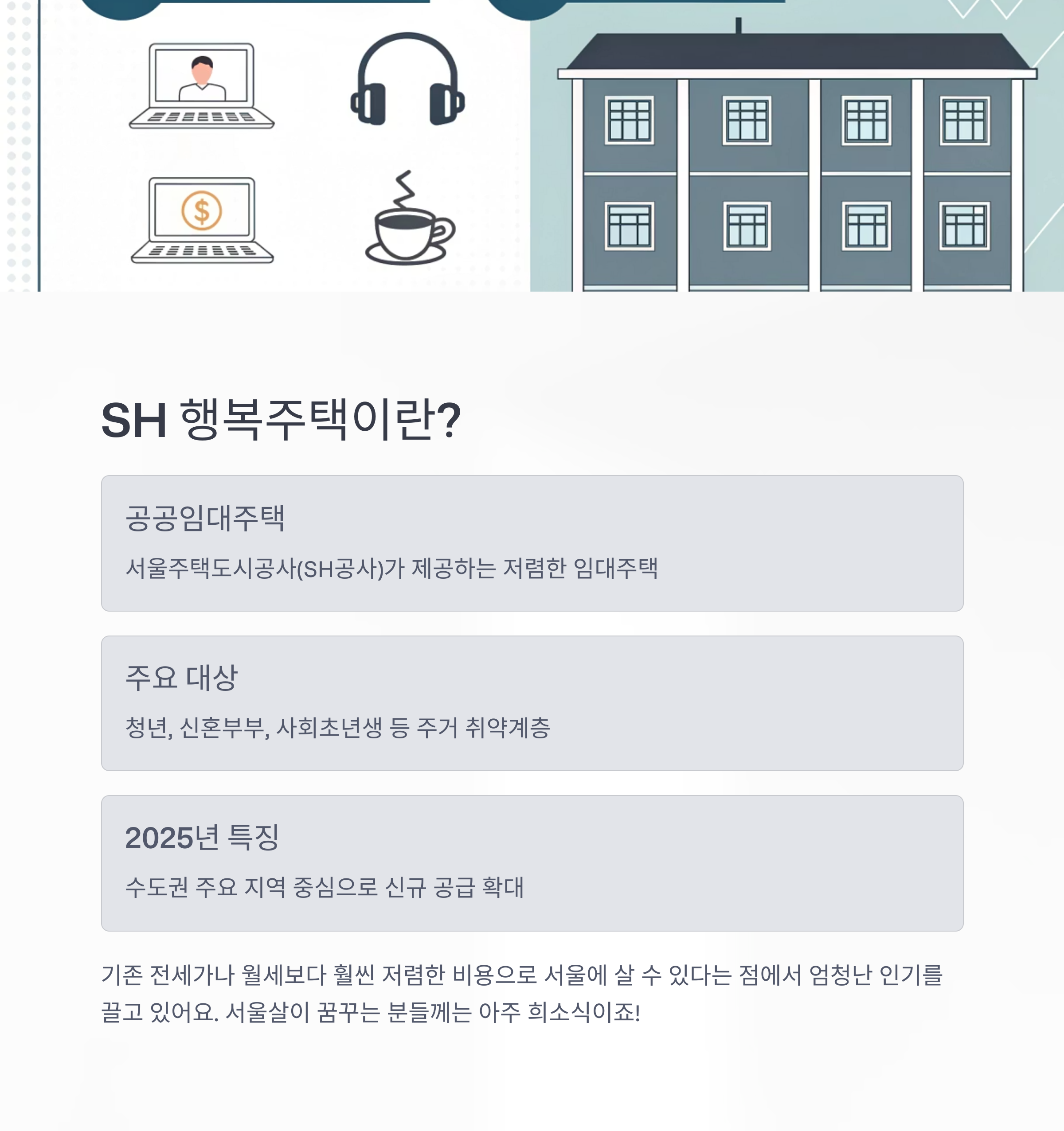 2025 SH 행복주택 완벽 가이드|청년·신혼부부 신청조건부터 위치, 임대료까지