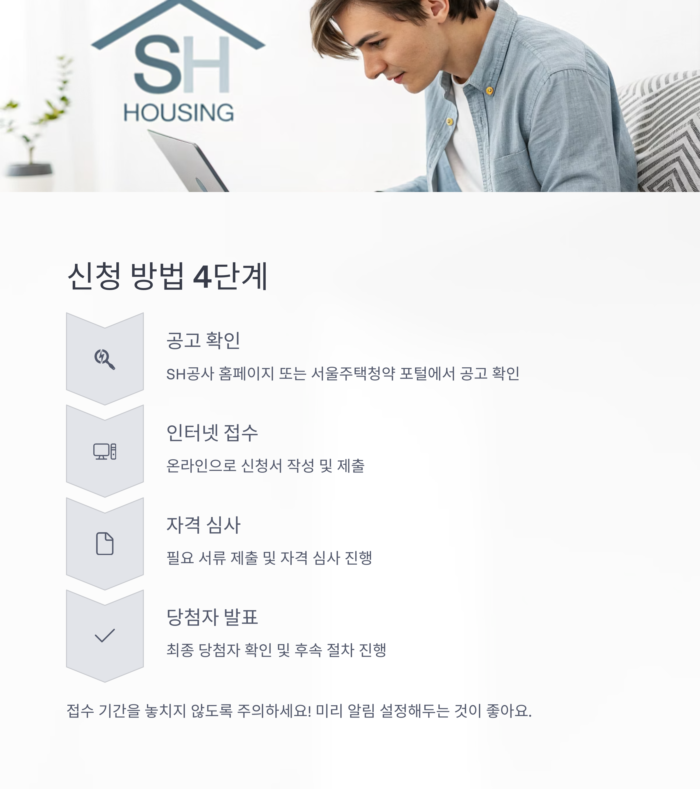 - 공고 확인 (SH공사 홈페이지 또는 서울주택청약 포털)