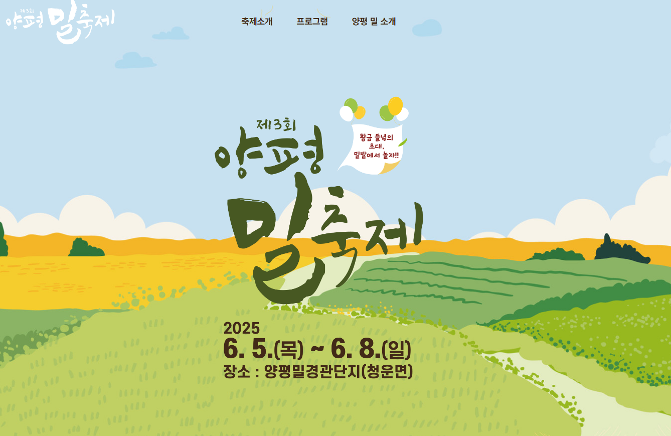 안녕하세요! 다들 여름 계획은 세우셨나요? 저는 벌써부터 두근두근 기다리고 있는 일정이 있어요. 바로 다음 달, 2025년 6월 5일부터 8일까지 양평에서 열리는 제3회 양평밀축제입니다. 작년에 친구가 다녀온 이야기를 듣고 너무 부러웠는데, 이번엔 꼭 직접 가보려고요! 자연 속에서 밀과 꿀을 주제로 한 다채로운 체험이 기다리고 있다니, 벌써부터 상상만으로도 힐링이 되는 기분이에요. 이번 글에서는 축제 전에 미리 알고 가면 좋은 정보들과 기대 포인트를 함께 정리해보려 해요. 같이 설레는 마음으로 준비해볼까요?