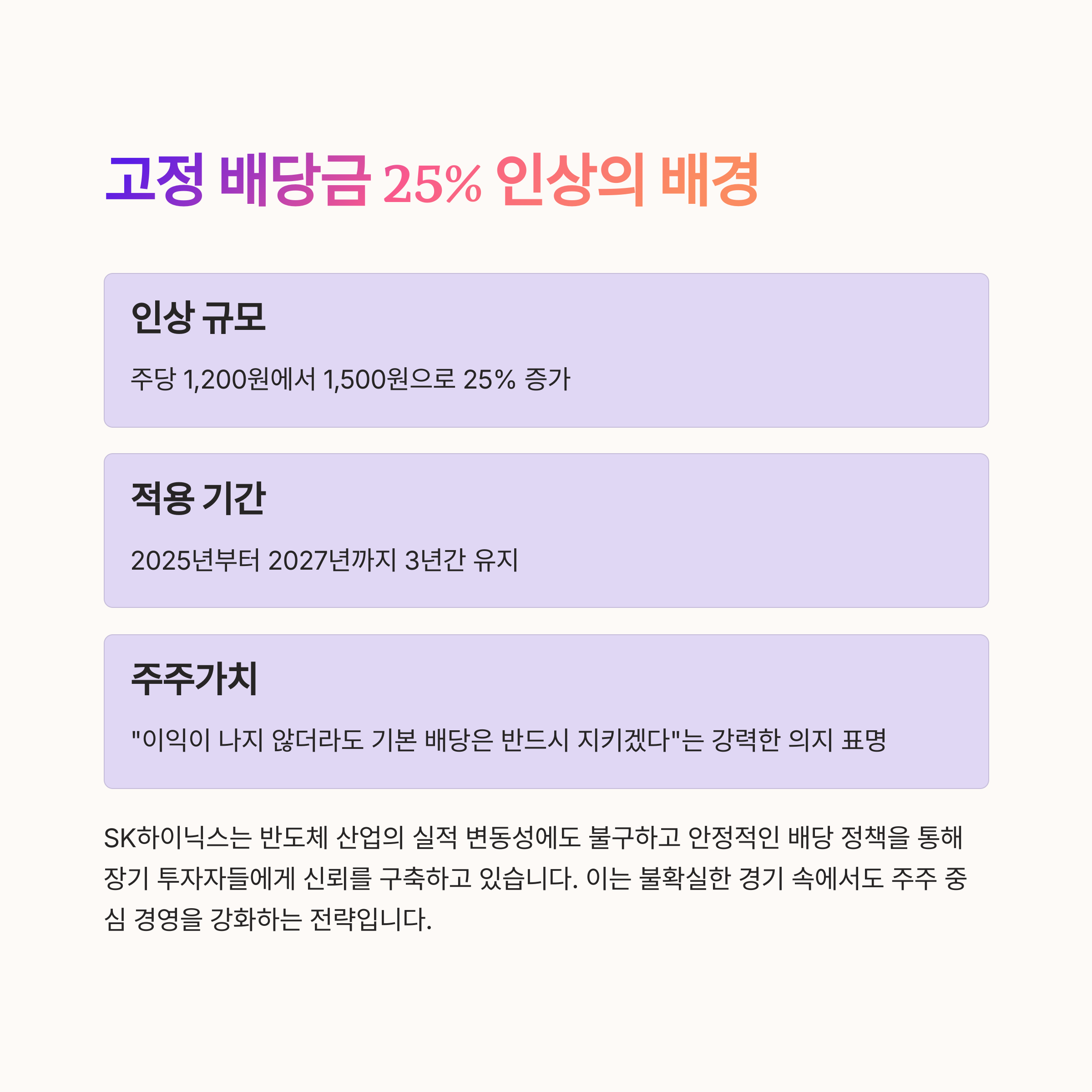 올해 SK하이닉스는 고정 배당 인상을 단행하며 시장에 강력한 신호를 보냈습니다.