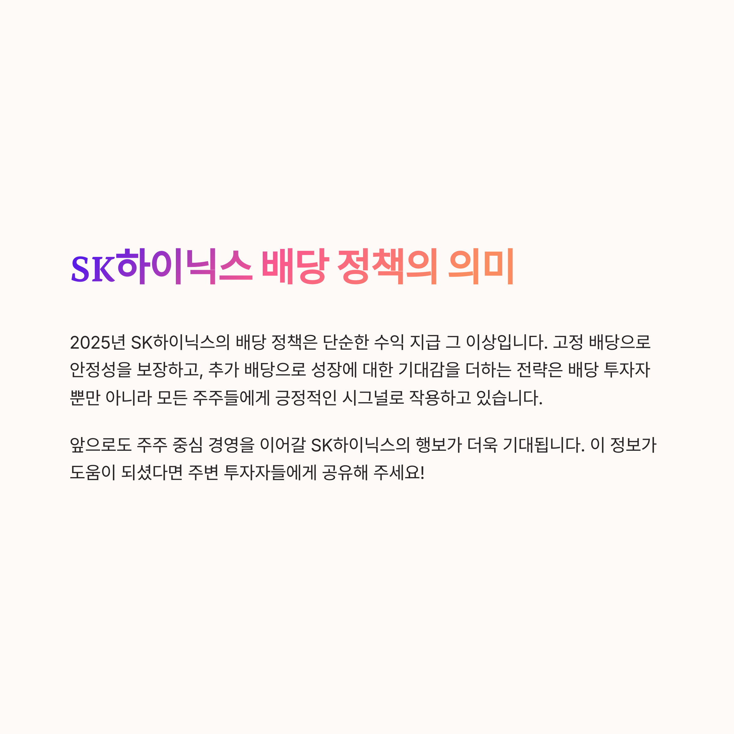 앞으로도 주주 중심 경영을 이어갈 SK하이닉스의 행보가 더욱 기대됩니다.