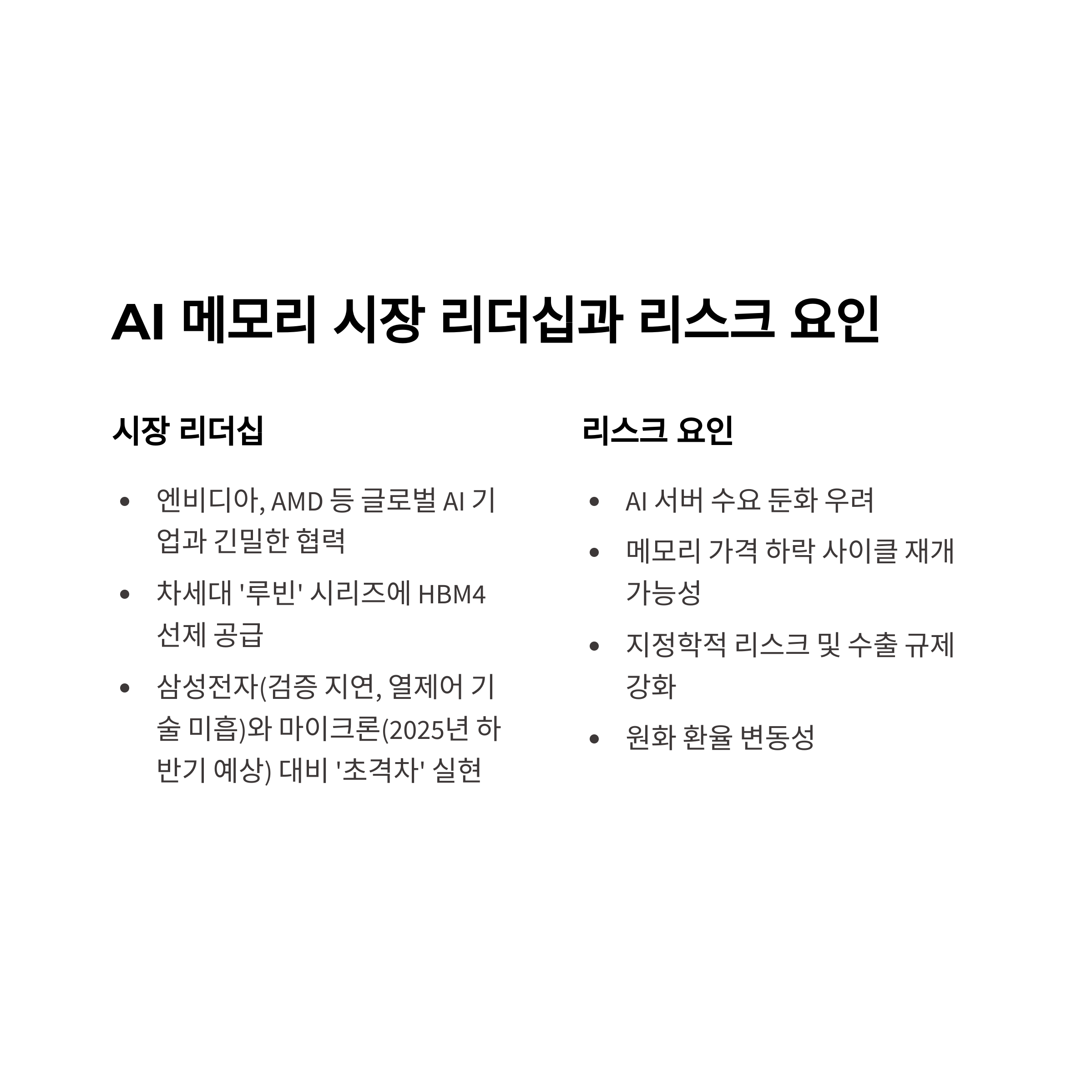 | 경쟁사 | HBM4 대응 현황 | 주요 이슈 |