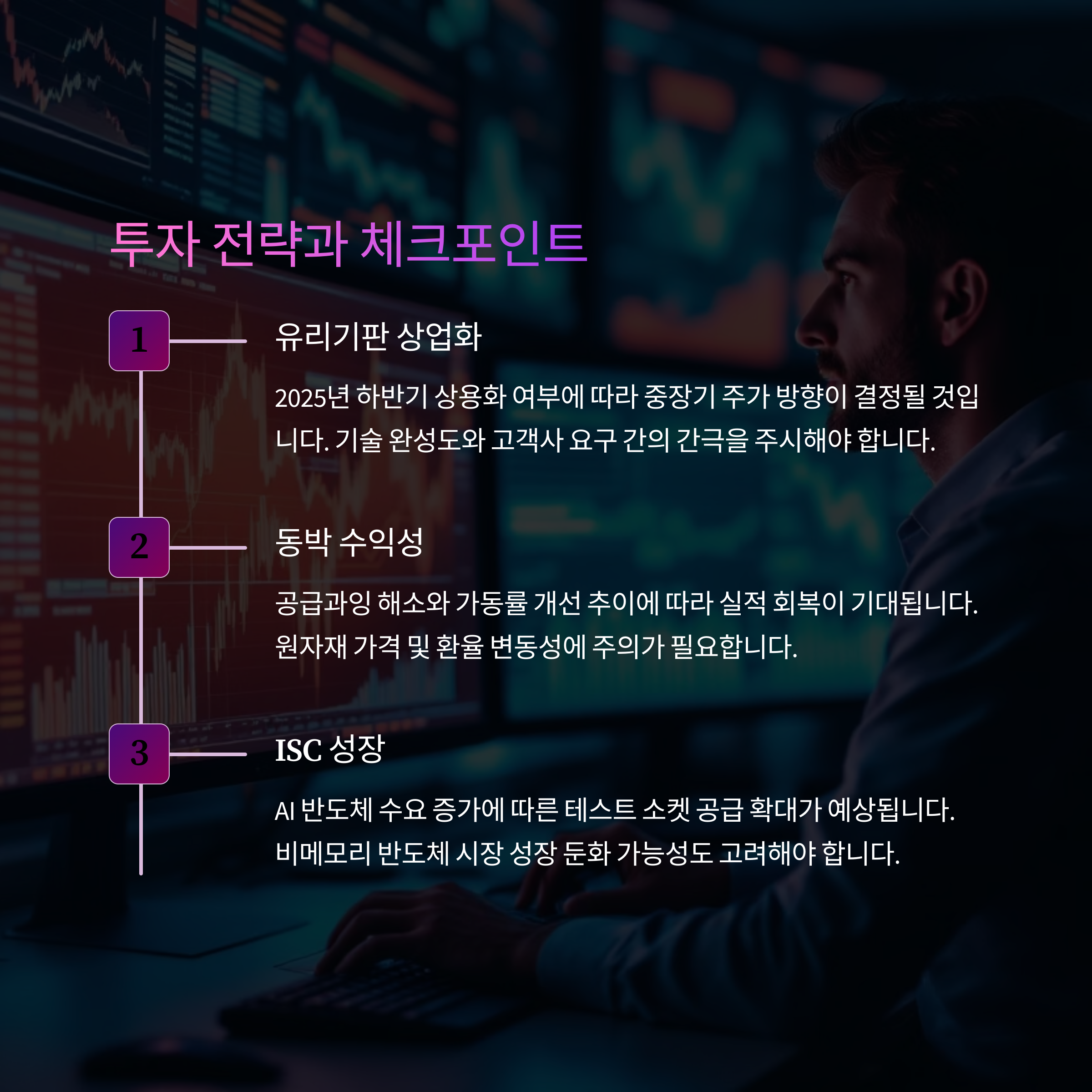 | 유리기판 상업화 | 2025년 하반기 상용화 여부에 따라 중장기 주가 방향 결정 |