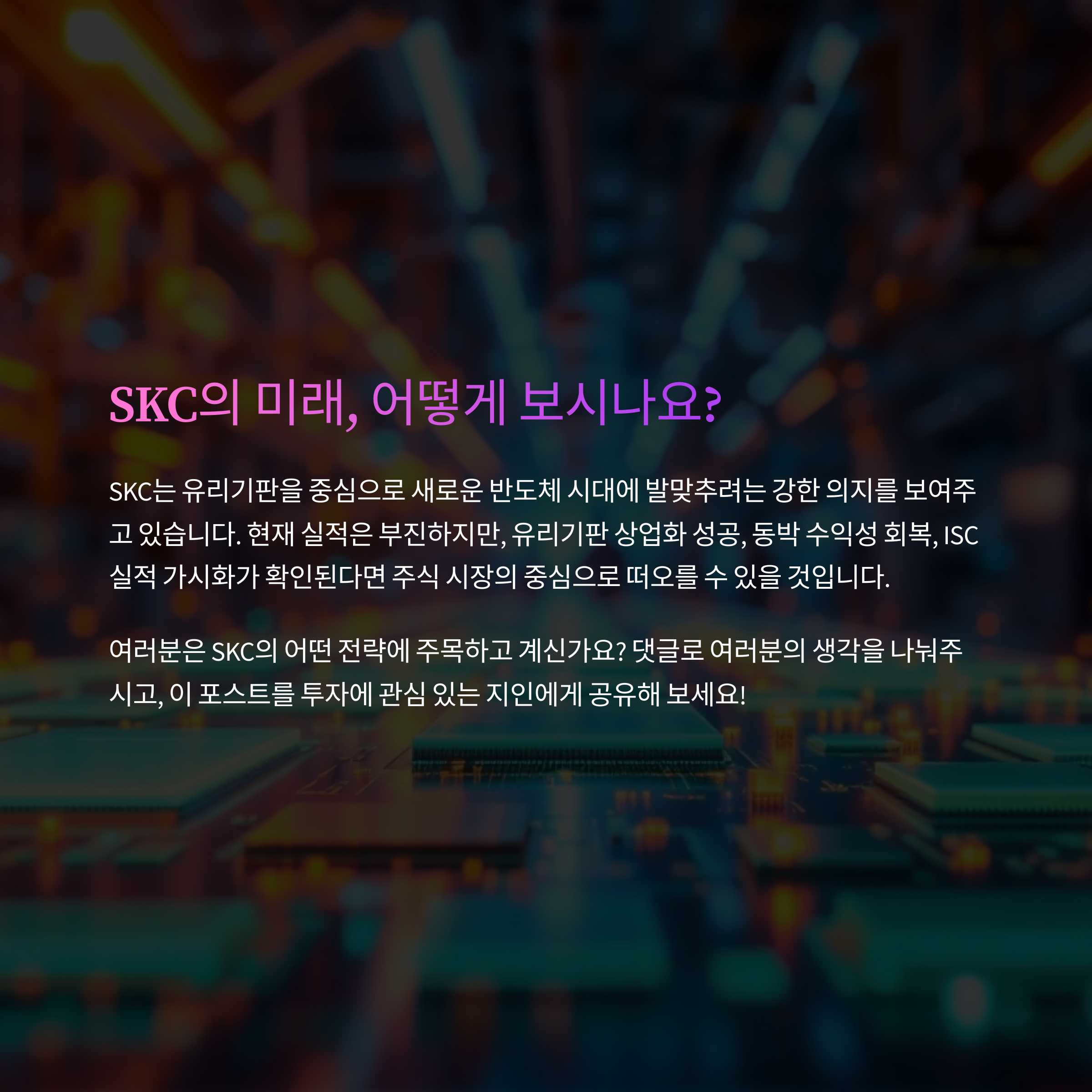 SKC는 유리기판을 중심으로 새로운 반도체 시대에 발맞추려는 강한 의지를 보여주고 있습니다.